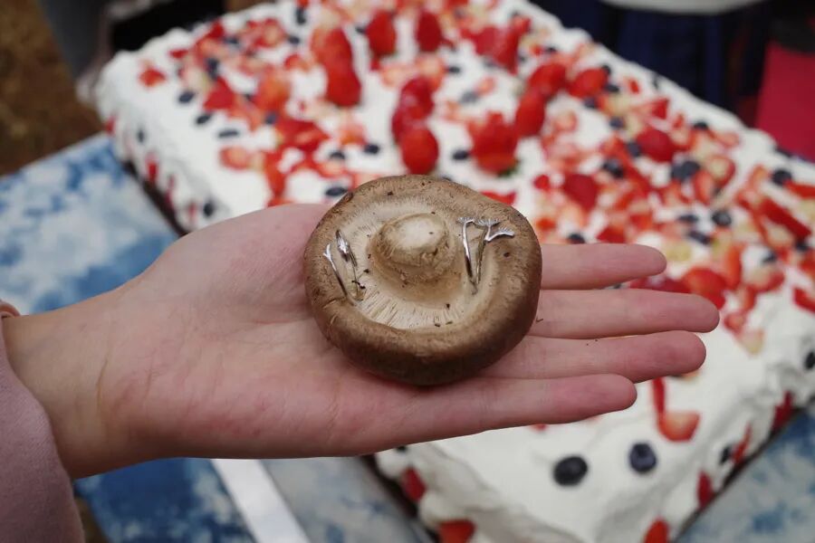 新人戒指放在香菇戒托里,仪式结束就下锅