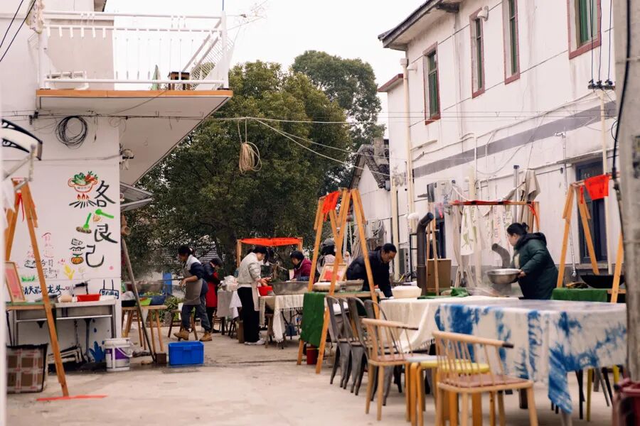 准备婚宴餐食的村舍有个好听的名字——路食记。每月都有各地朋友带着食材前来做饭,“空调、冰箱、烤箱、桌椅都是二手的,这是需要自己动手才能好好吃饭的餐厅。”